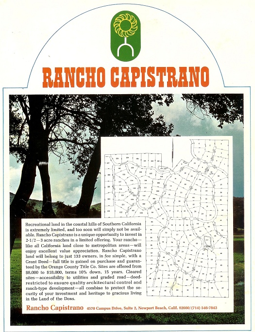 Rancho Capistrano 1969 sales flyer